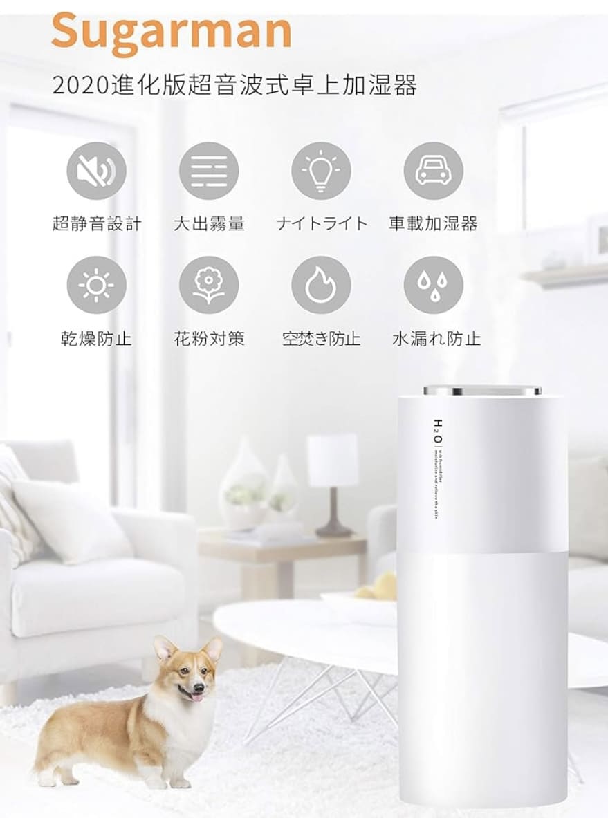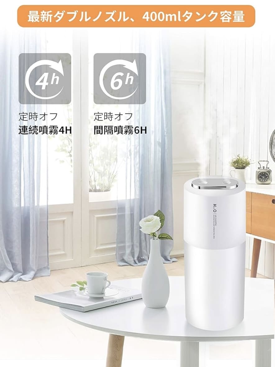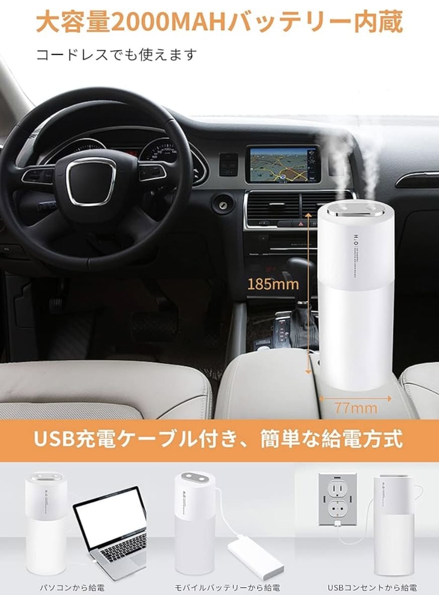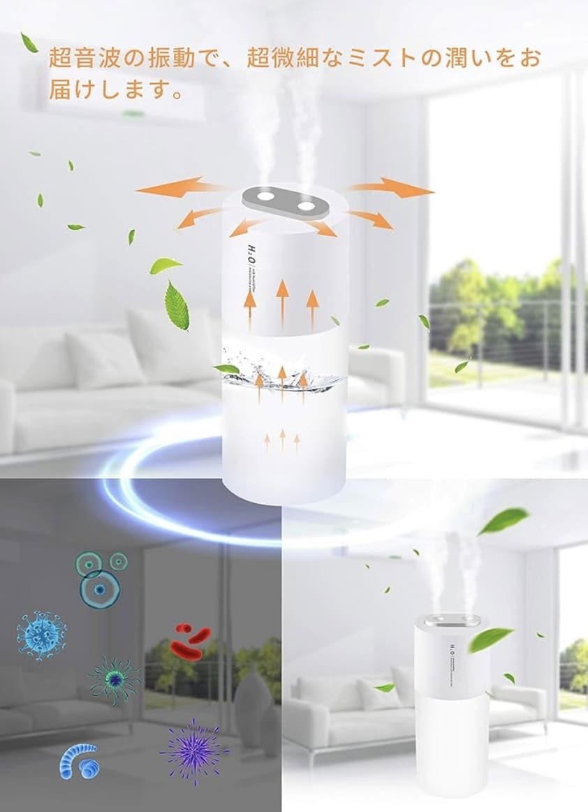 採用先進 超音波加濕技術,釋放細緻水霧,有效改善室內空氣品質。內建 2000mAh 大容量電池,即使無插座環境也能持續運作,搭配 USB 充電,使用方便又隨身可攜。